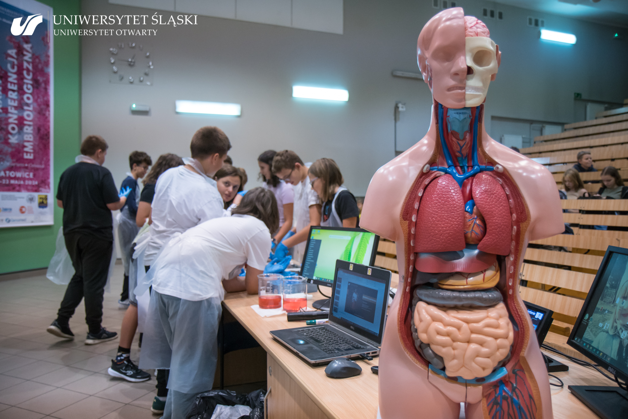 Manekin pozwalający uczyć się organów człowieka w tle uczestnicy wydarzenia