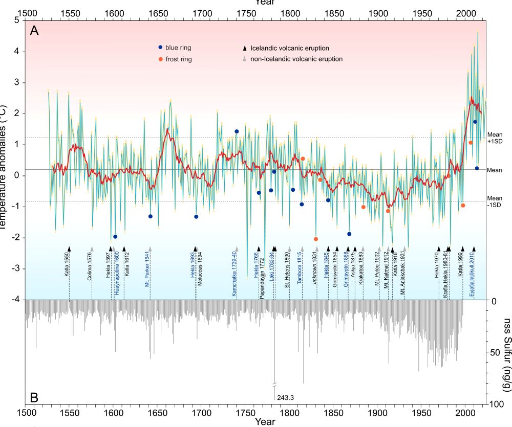 Uzyskane wyniki dostarczają istotnych danych na temat naturalnej zmienności klimatu oraz umożliwiają odniesienie obserwowanego obecnie wzrostu temperatur do zakresu zmian rejestrowanych w ciągu ostatnich 500 lat. Publikacja dokumentuje również wpływ zdarzeń wulkanicznych na warunki klimatyczne, widoczny w postaci charakterystycznych zmian w strukturze drewna. Po raz pierwszy odnaleziono ślady dawnych globalnych erupcji wulkanicznych zapisanych w cechach anatomicznych roślin drzewiastych Arktyki. Zidentyfikowano ślady ekstremalnych ochłodzeń, związanych z dużymi erupcjami, m.in. Laki (1783) i Tambora (1815). Tradycyjne przekazy ustne mówiące o „roku, w którym nie było lata” w historii Inuitów stanowią przejaw zbiorowej pamięci o ekstremalnych ochłodzeniach po erupcjach. Po raz pierwszy w Arktyce znaleziono zapis dendrochronologiczny tych zdarzeń. Było to możliwe dzięki odkryciu tzw. przyrostów niebieskich (blue rings), stanowiących biologiczne „blizny”, które powstają w czasie gwałtownych spadków temperatury w okresie letnim.