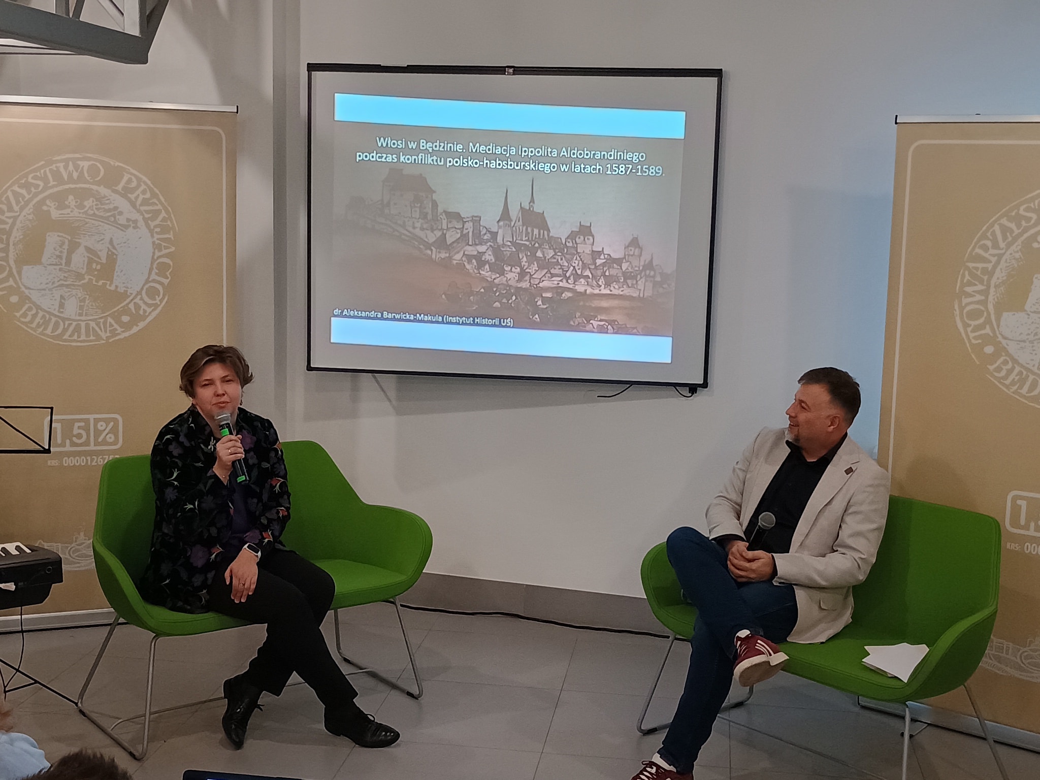 Dnia 16 października dr Aleksandra Barwicka-Makula gościła w Będzinie na spotkaniu zorganizowanym przez Towarzystwo Przyjaciół Będzina, podczas którego przybliżyła zebranej publiczności zagadnienie mediacji Hipolita Aldobrandiniego w czasie rokowań będzińsko-bytomskich.