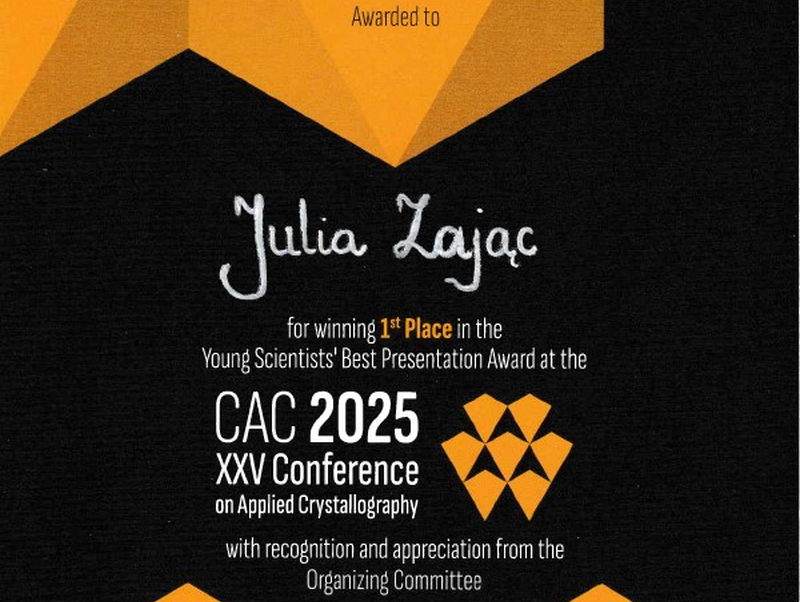 (Polski) 1. miejsce w konkursie Young Scientists’ Best Presentation Award dla Julii Zając