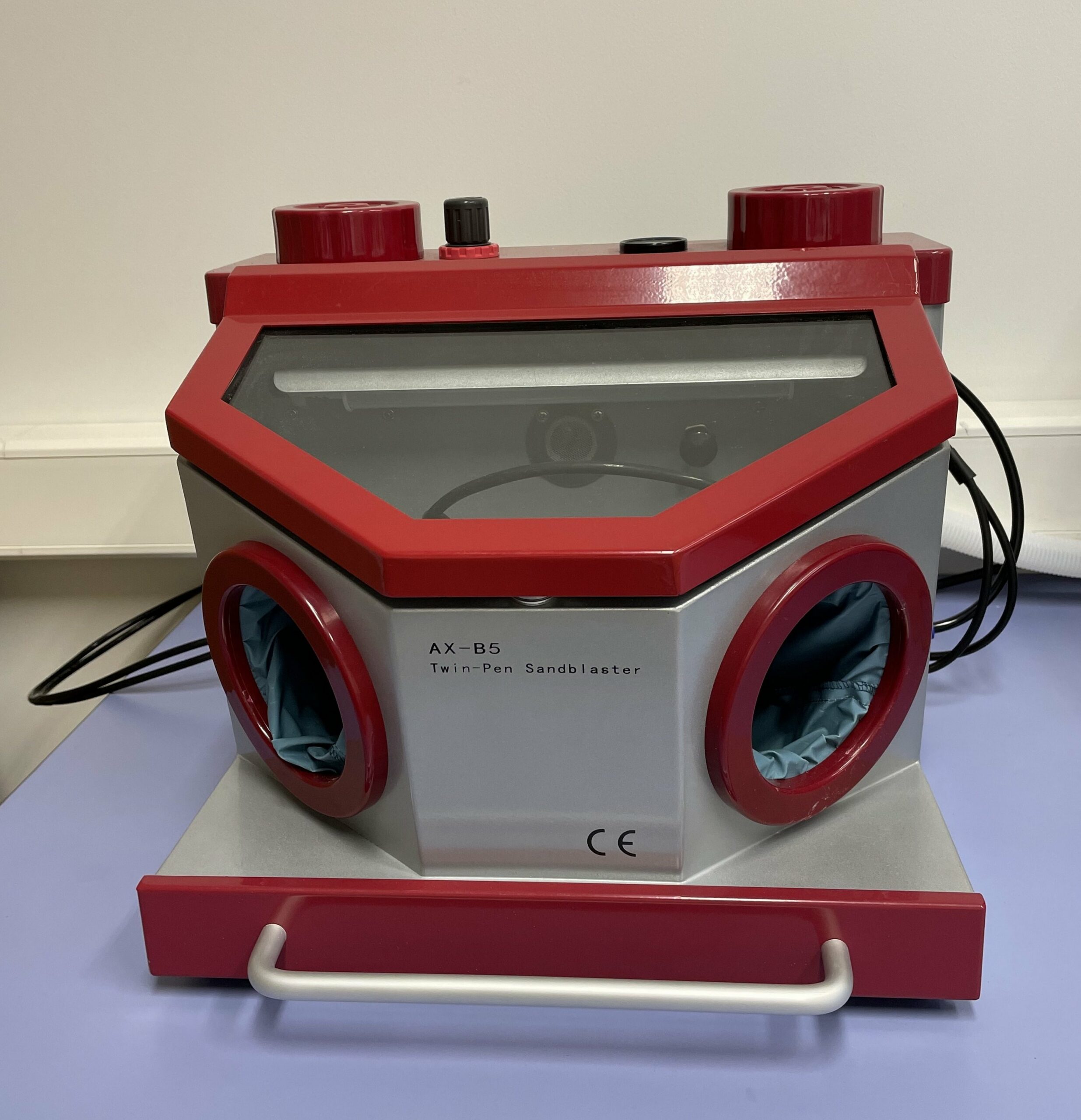 - AX-B5 4-Feather SANDBLASTING UNIT. The device designed for precise surface preparation and machining of metallic materials by removing impurities, oxides, and surface layers using fine-grained sand of varying sizes and abrasive hardness. The sandblaster allows for controlled modification of surface structure, which is crucial in electrochemical testing and material sample preparation. The ability to precisely adjust the blasting jet and direction ensures repeatability and high quality of prepared samples.