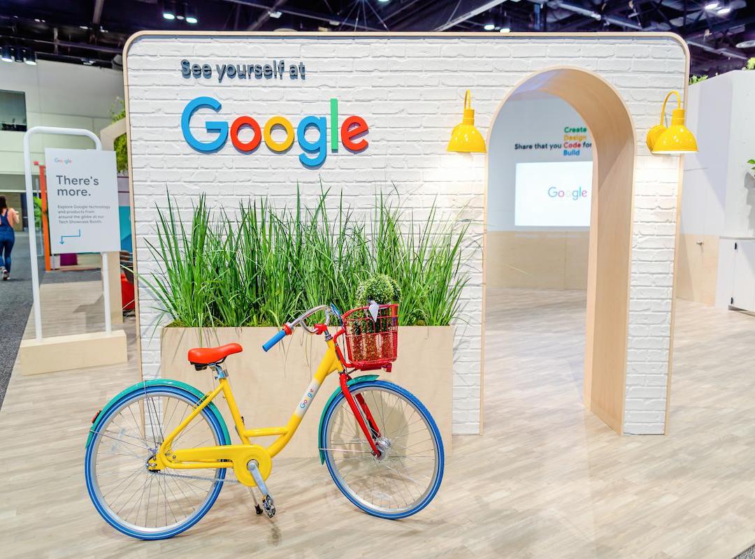 Logo Goole i rower w barwach firmy