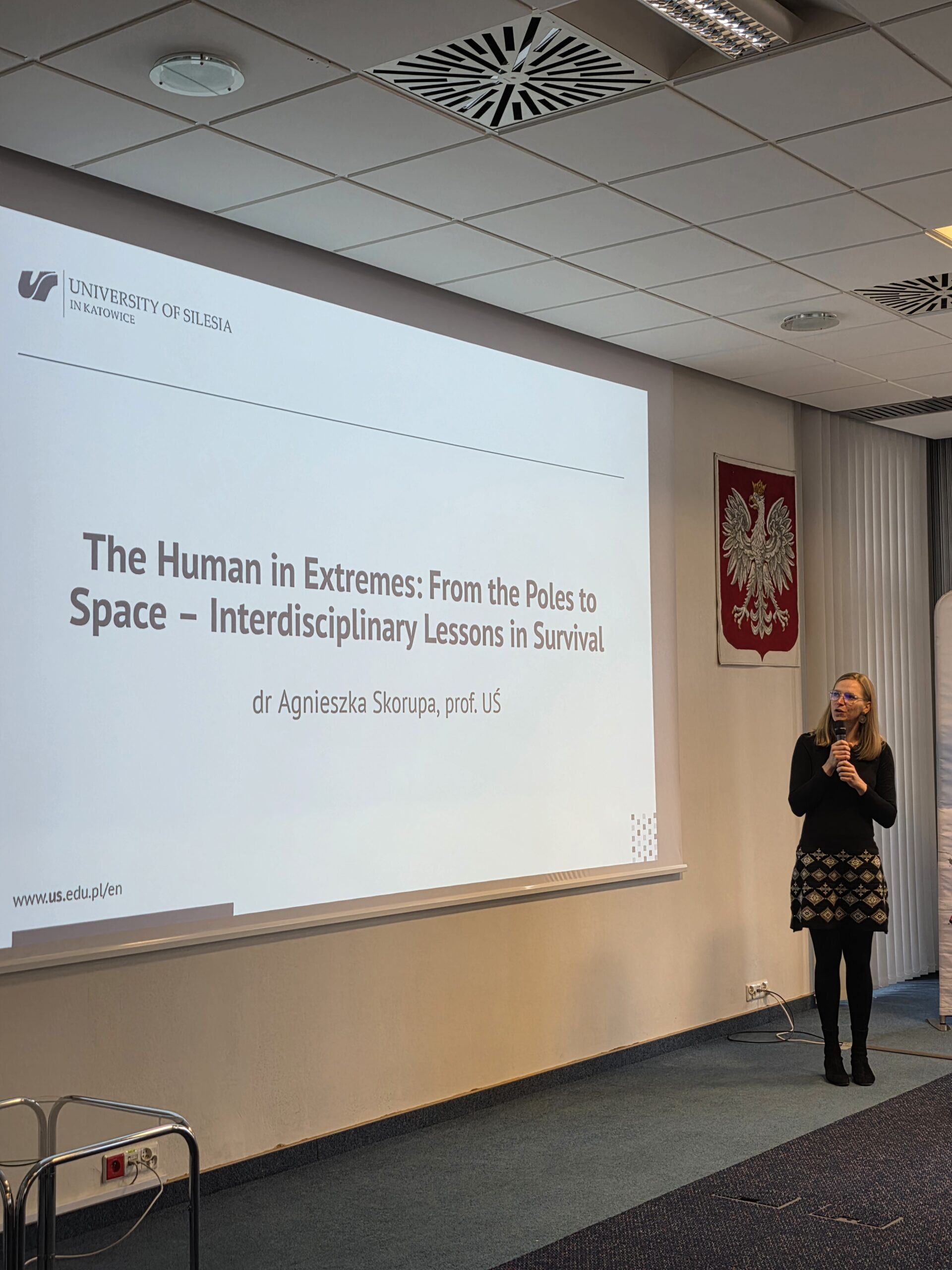 W miniony poniedziałek dr Agnieszka Skorupa, prof. UŚ, wygłosiła wykład podczas Uroczystej Inauguracji Roku Akademickiego 2025/2026 Międzynarodowej Środowiskowej Szkoły Doktorskiej Centrum Studiów Polarnych Uniwersytetu Śląskiego.