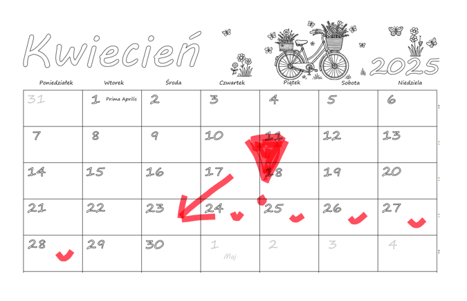 Od środy 23.04.2025 godz. 17:00 do poniedziałku 28.04.2025 godz. 23:59