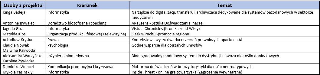 Lista finalistów I edycji projektu