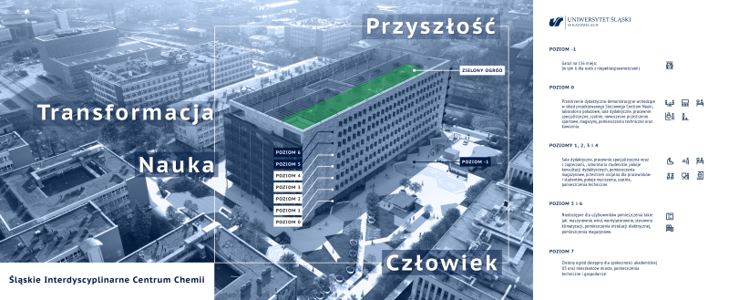 Śląskie Interdyscyplinarne Centrum Chemii to wielofunkcyjna infrastruktura, której powierzchnia całkowita wynosić będzie: 31 001,54 m² (powierzchnia użytkowa: 11 029,63 m²). Budynek będzie składał się z 7 kondygnacji nadziemnych i 1 podziemnej z miejscami parkingowymi.