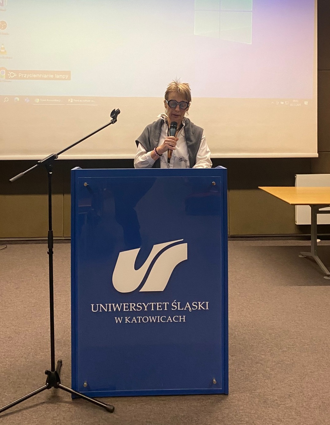 Część wykładową poprowadziła również pani Maria Muszyńska, przewodnicząca Koła Naukowego Komunikacji Międzykulturowej.