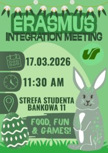 W dniu 17 marca br. o godz. 11:30 w Strefie Studenta przy ul. Bankowej odbędzie się Erasmus Integration Meeting, na który serdecznie zapraszamy wszystkie osoby studenckie Wydziału Nauk Społecznych.