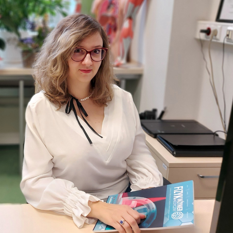 Piszę tak szeroko o fizyce medycznej, bo właśnie skończenie tego kierunku i dołączenie do społeczności Fizyków Medycznych, umożliwiło mi odnalezienie się w środowisku akademickim. Praca na uczelni wymaga ciągłego rozwoju, podążania za nowymi trendami naukowymi, tworzenia nowatorskich rozwiązań. Jako osoba lubiąca zmiany, przy realizacji prac inżynierskiej, magisterskiej i doktorskiej mogłam pozwolić sobie na wybór tematyki badawczej z kompletnie różnych dziedzin. Także, w moim dorobku naukowym znalazły się prace o różnej tematyce, np. poświęconej badaniom białek krwi osób chorych na Parkinsona, badaniom krwi sportowców, określeniu biozgodności nanocząstek ceramicznych do zastosowań w stomatologii, badaniom diagnostycznym piersi przy pomocy termowizji, czy zastosowaniu tej techniki w badaniach przesiewowych celem znalezienia osób z podwyższoną temperaturą ciała podczas pandemii COVID 19.