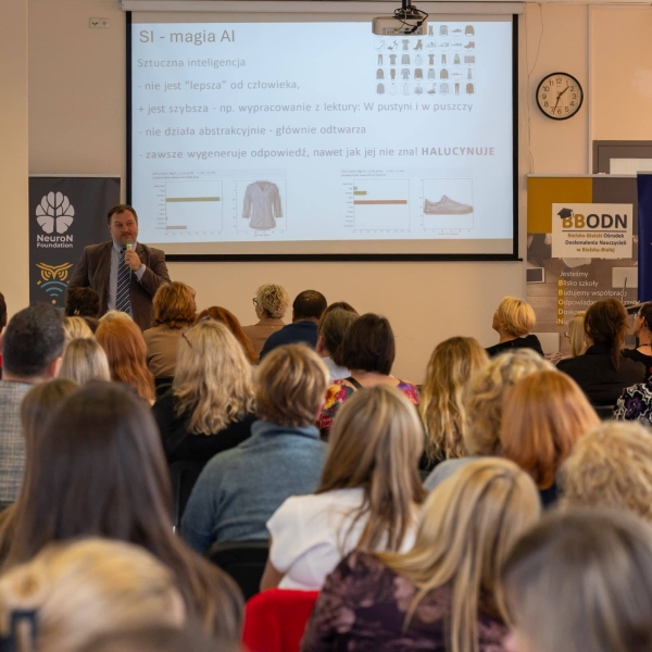 W dniu 16 października 2025 r. dr inż. Tomasz Wesołowski wziął udział w drugiej edycji konferencji dydaktycznej pn.: Edukacja – Nowe Horyzonty, Nowe Wyzwania. W tym roku konferencja odbywała się pod hasłem: Cyfrowo, bezpiecznie i zdrowo czyli jak mądrze wykorzystywać technologię w edukacji, zachowując równowagę i kontrolę nad procesem nauczania.