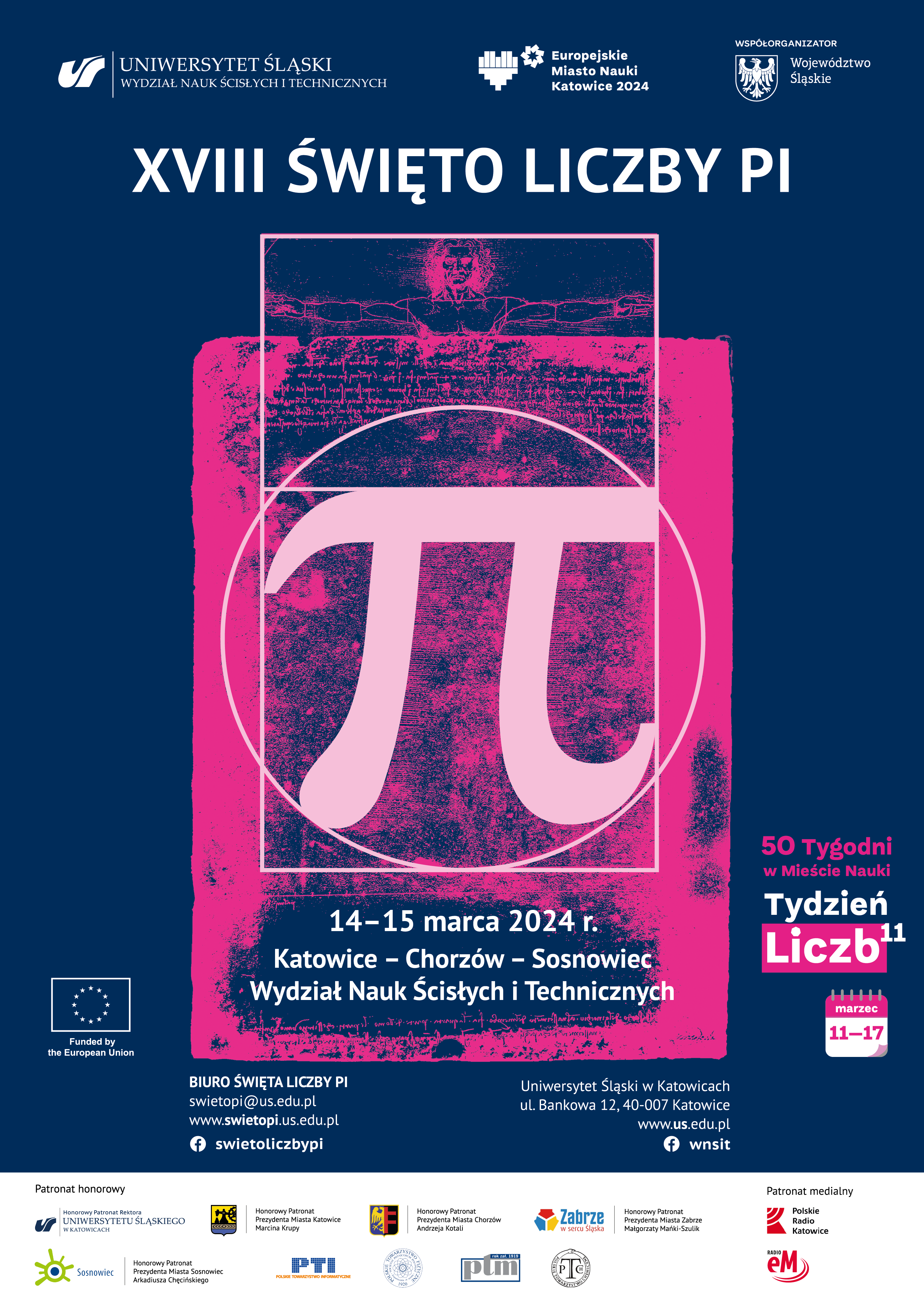 W 2024 r. Święto Liczby Pi jest częścią Tygodnia Liczb w ramach Europejskiego Miasta Nauki Katowice 2024. Święto odbędzie się w dniach 14 i 15 marca w Katowicach, Chorzowie i Sosnowcu.