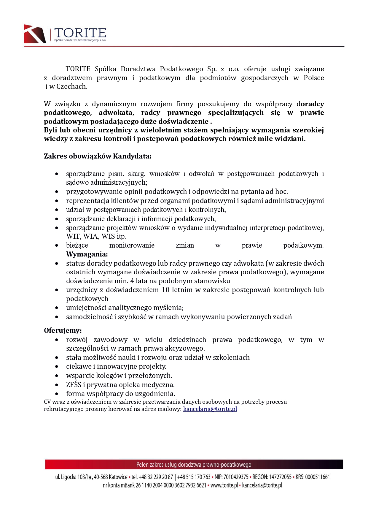 Torite Spółka Doradztwa Podatkowego Sp. z o.o. z siedzibą w Katowicach