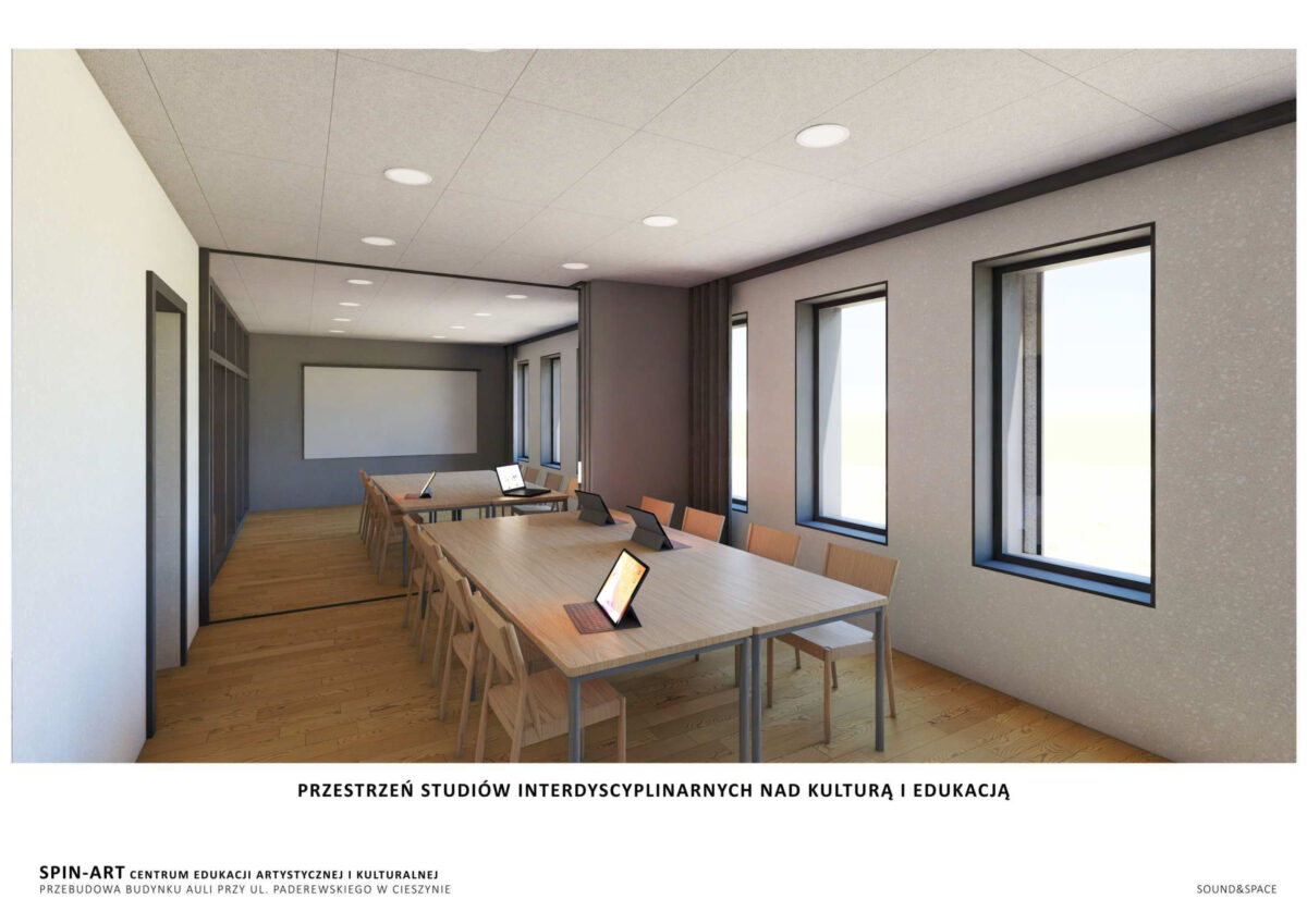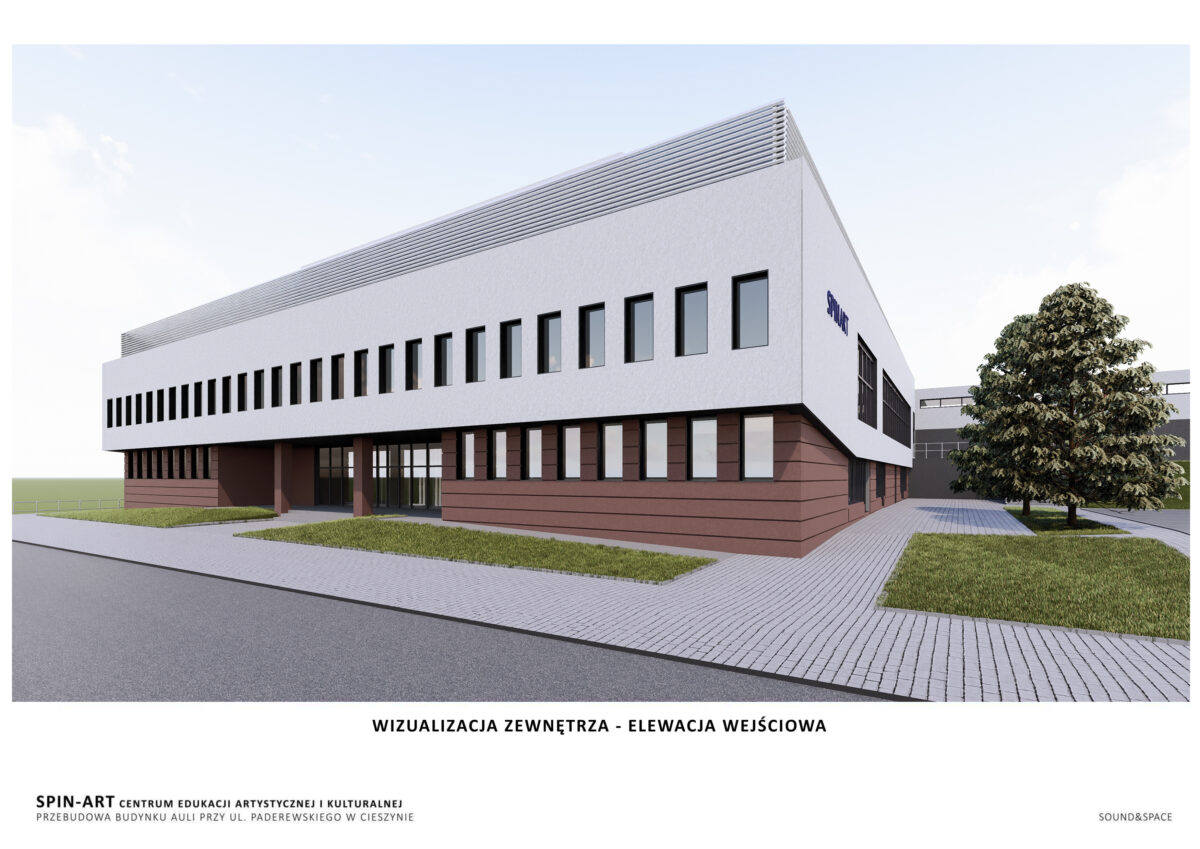 Wizualizacje budynku spinART – Centrum Edukacji Artystycznej i Kulturalnej UŚ| mat. SOUND & SPACE Sp. z o.o.